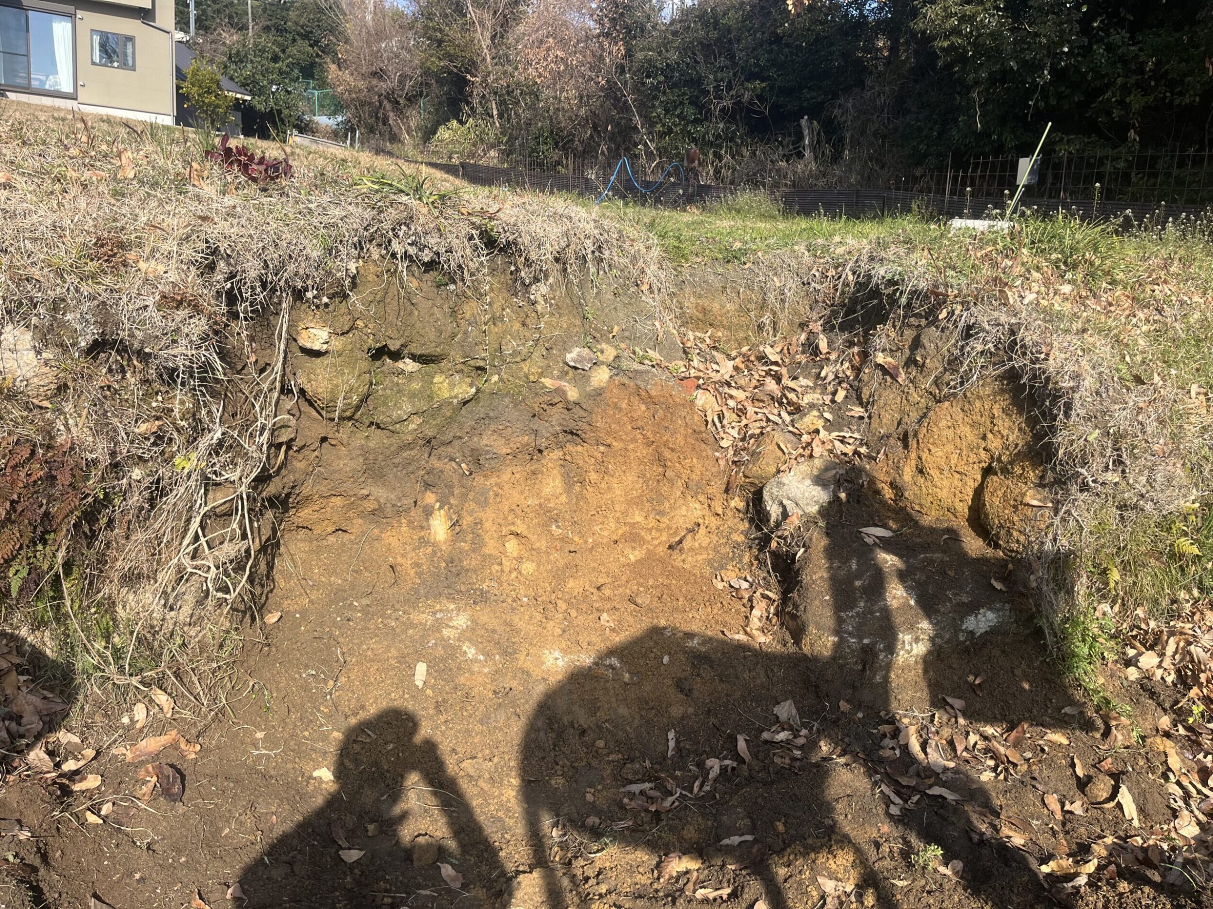 大雨の影響で崩れてしまった石垣の土留め工事です。before