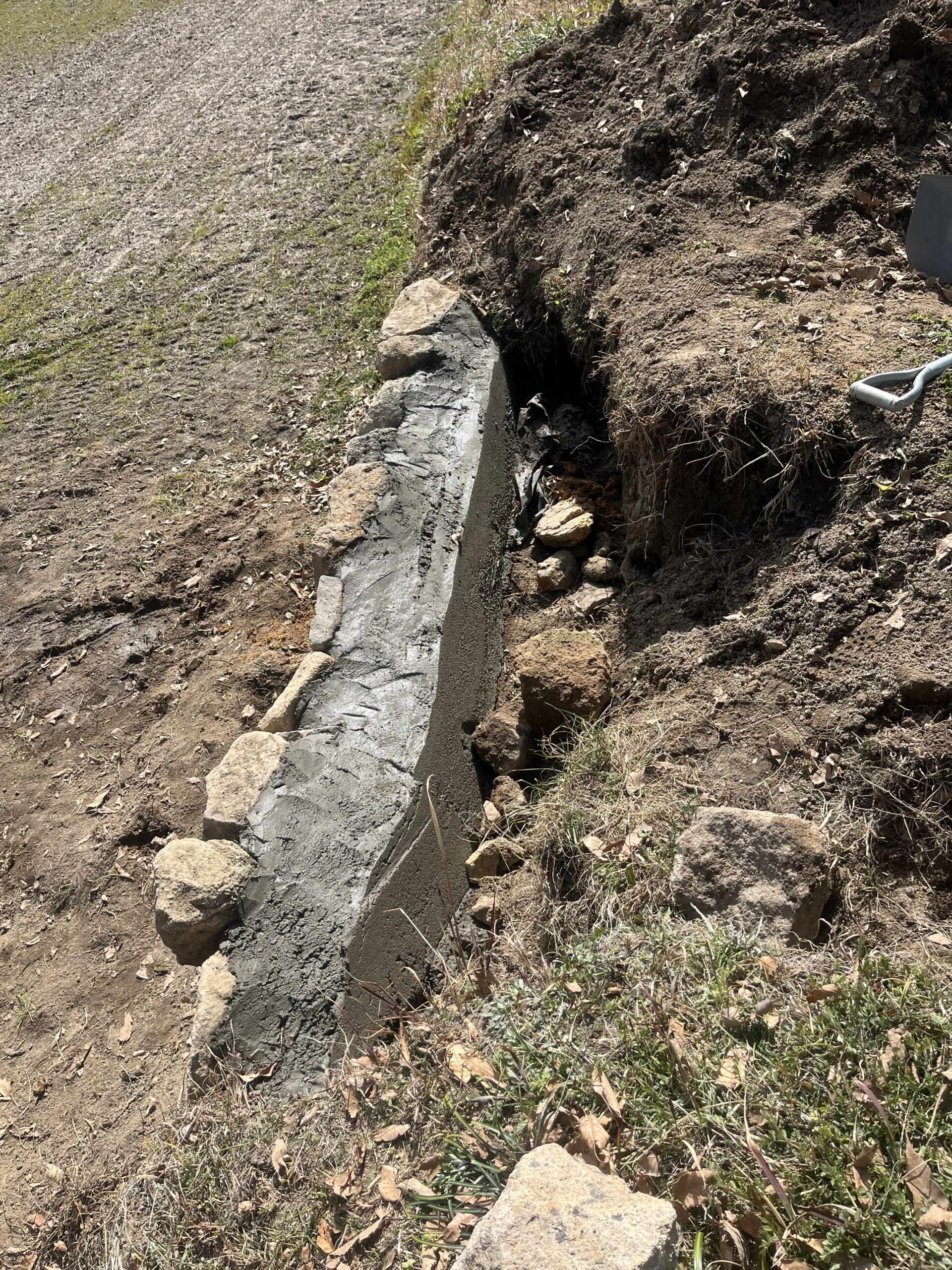 強度確保のため裏込めにコンクリートを打設。