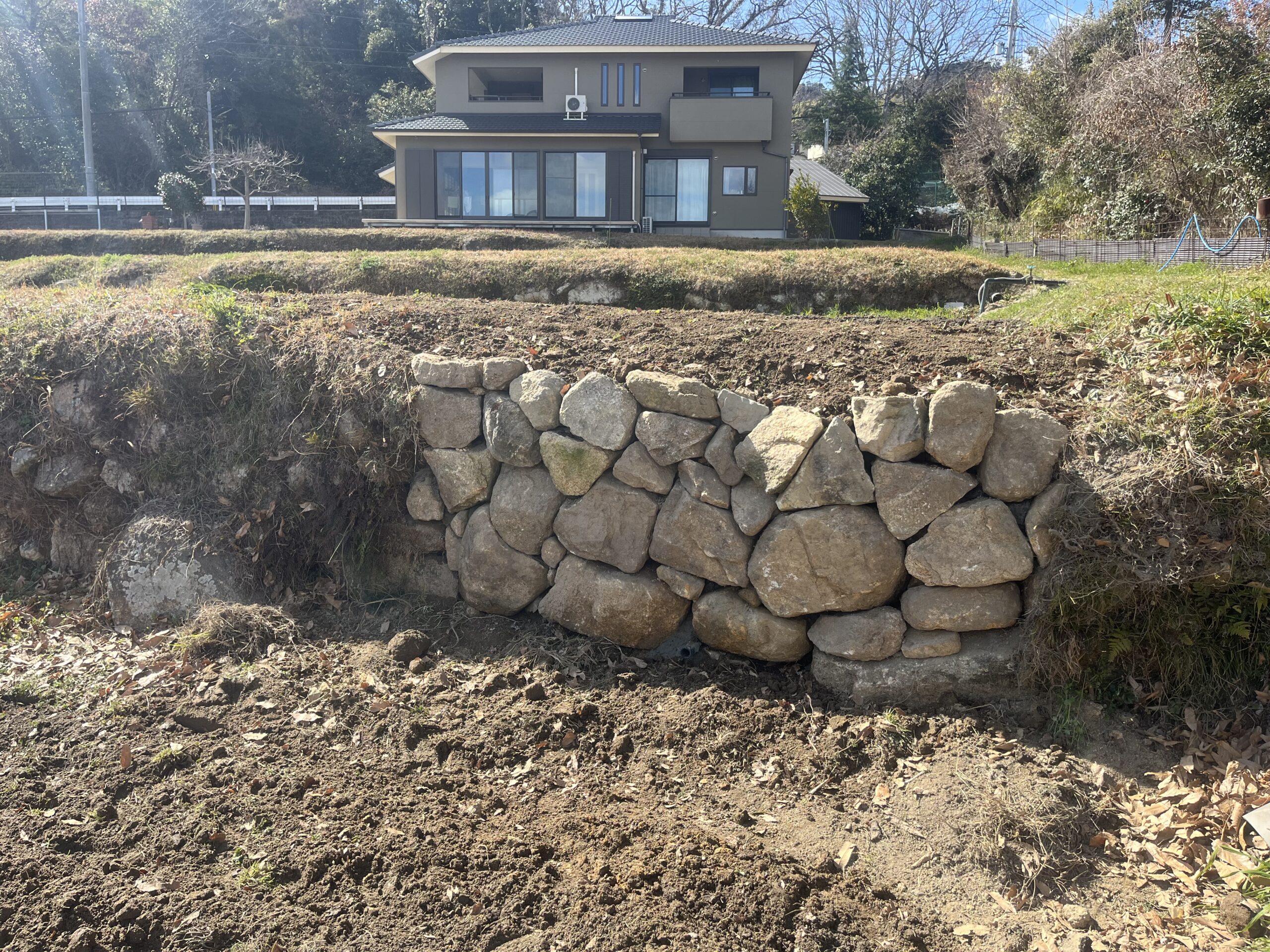 お庭の石垣、圃場の石垣、土留め工事、景石工事、石積み工事、造園工事、土木工事も匠誠造園建創にお任せください。